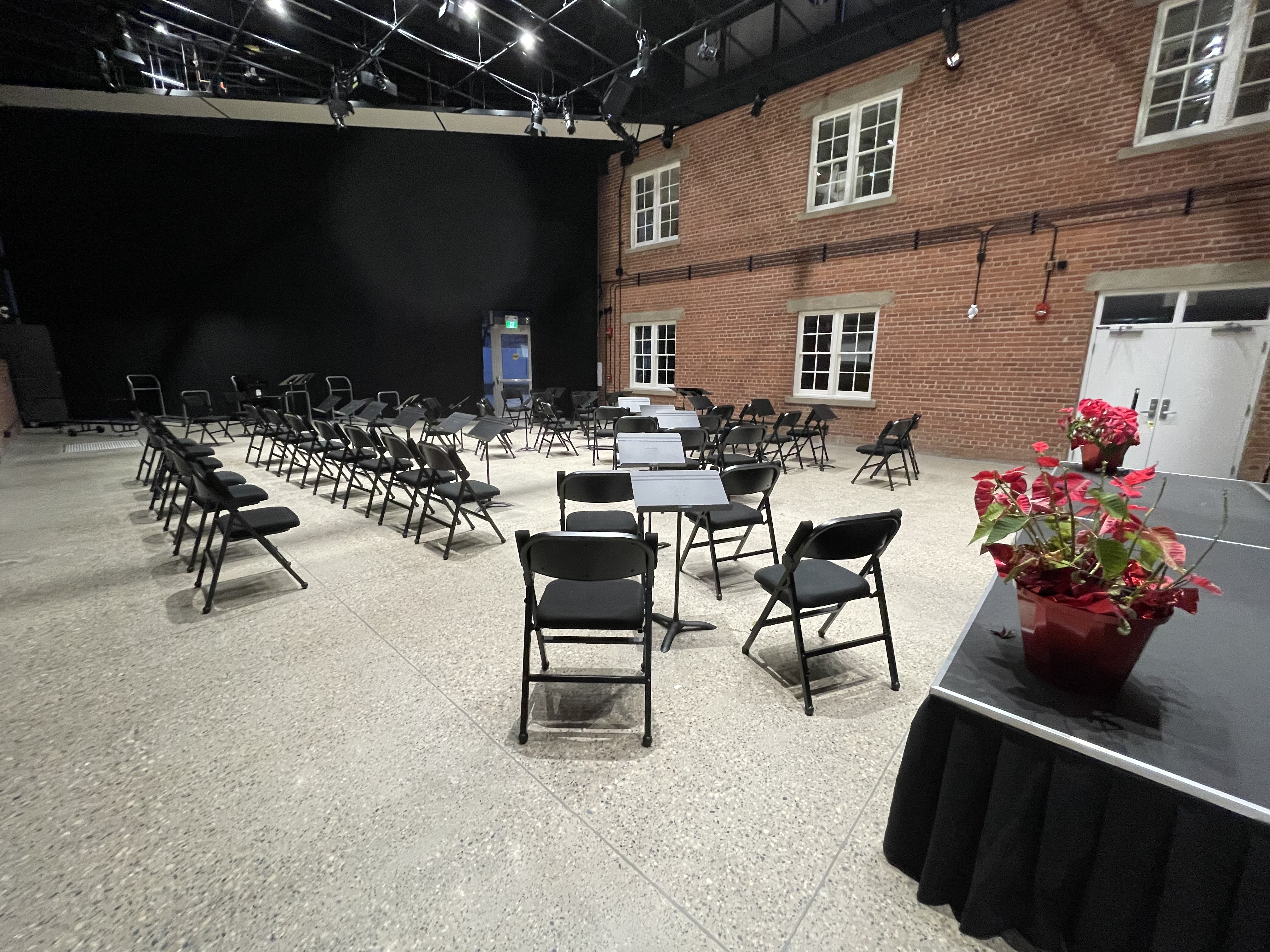 ArtsHub Ortona boasts a new focal point, the Solarium. This 2000 ft² multi-purpose space features a large exterior-facing glass wall equipped with a theatre sized screen plus projector, dynamic staging, and a black out curtain to transform the space for your event.