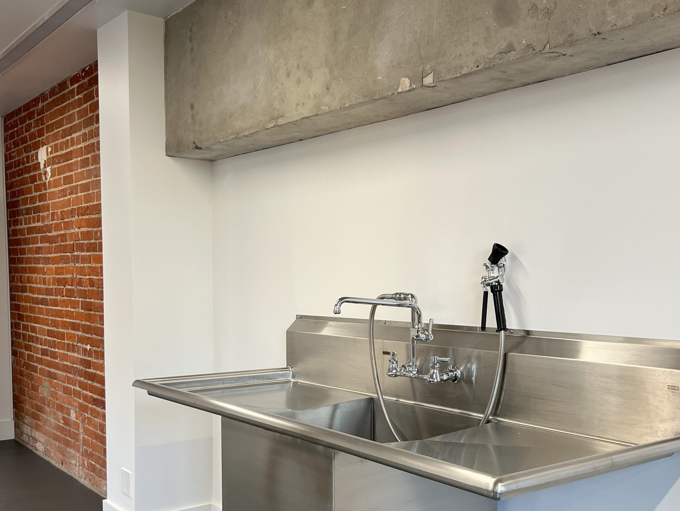 The Workshop is located on the main floor of the building and is equipped with work stations and a large stainless steel sink. Book the entire space for your next class, or book an individual work station to start creating.